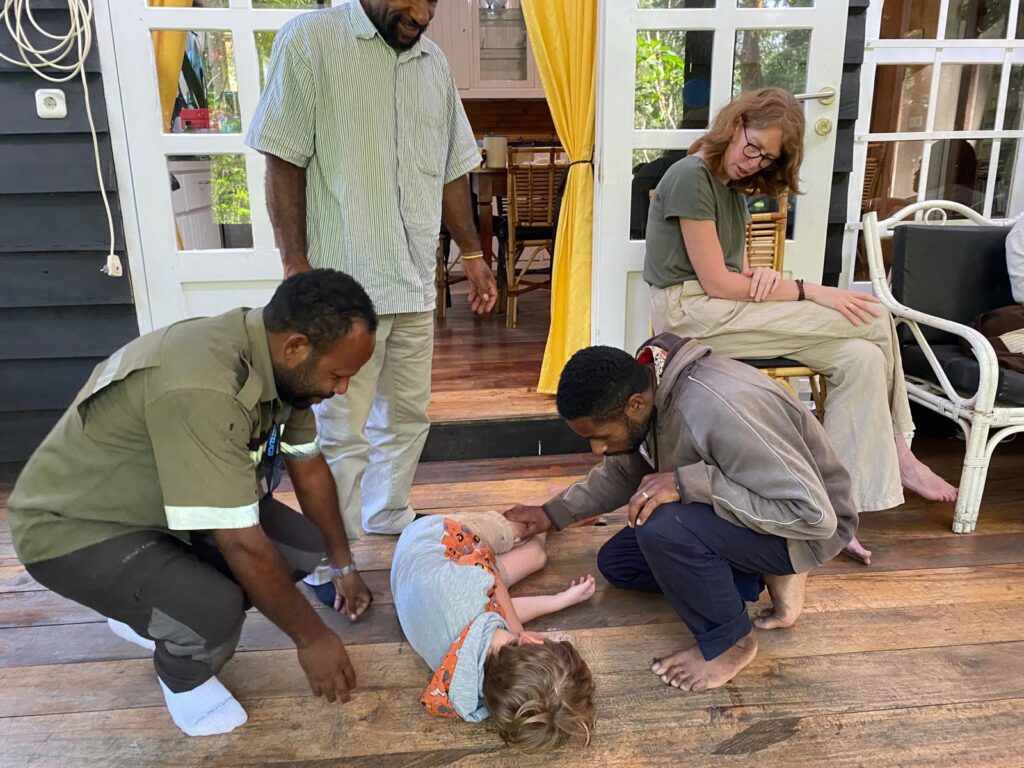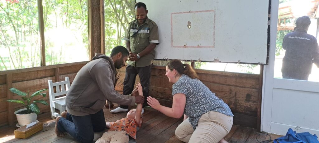 Vanzelf kwam het gesprek op EHBO en werd het idee opgevat om EHBO-trainingen te gaan verzorgen op Papoea. Uiteraard moest hiervoor het EHBO-onderwijs aangepast worden aan de situatie op Papoea. De training zou alleen gericht zijn op de dingen waarmee de cursisten ook echt iets kunnen. In de woorden van Wijnanda: “Ik kan ze leren reanimeren, maar als het ziekenhuis geen AED of fatsoenlijke hartbewaking heeft, leidt dat nergens toe”. Voor Nederlanders en vooral eerstehulpverleners is dit wellicht moeilijk te bevatten – iets is toch altijd beter dan niets? -, maar het is wel de realiteit op Papoea. Realiseer je hierbij dat bij ons de reanimatie pas voor het eerst in de 24ste druk van het Oranje Kruisboekje werd opgenomen. We spreken dan over het jaar 2003. Dus nog niet zo heel lang geleden.